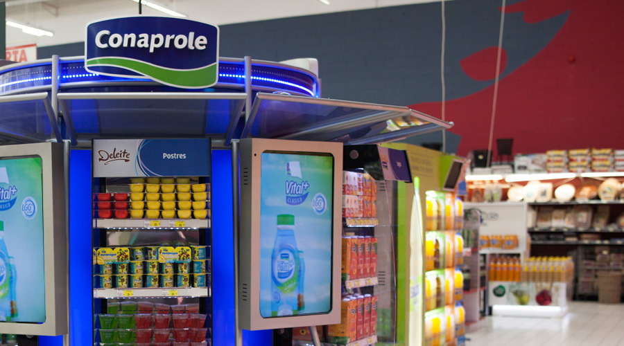 Isla para exhibición de productos refrigerados.