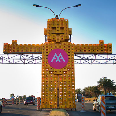 Montaje de cajones de cerveza Pilsen sobre Rambla Entrada a evento Aquel Abrazo