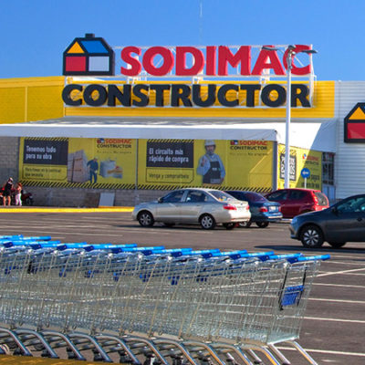 Logotipos armados en chapa, iluminación backlight y lona con vinilos. Sodimac Constructor y Sodimac Home Center