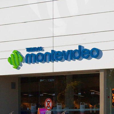 Medianera en Avenida Italia y Tres Cerros. Impresa en lona microperforada e iluminación frontlight