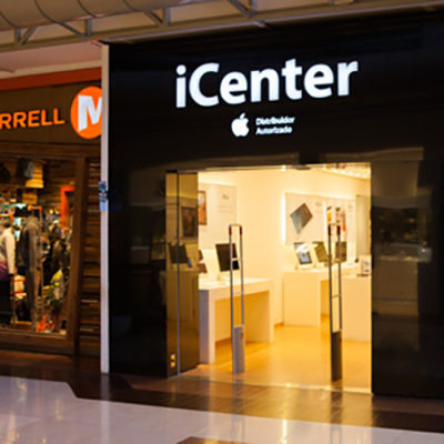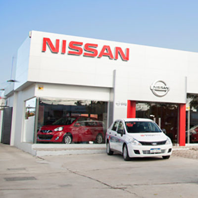 Fachada realizada en aluminio compuesto. Logos armados en acrílico con iluminación LED.
